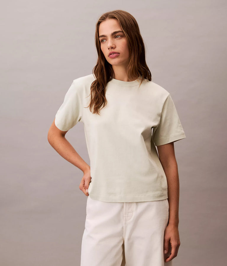 I bought the Calvin Klein T-shirt in white, size L, and it arrived new with tags. The quality is really good and it fits me perfectly. I'm very happy with my purchase.